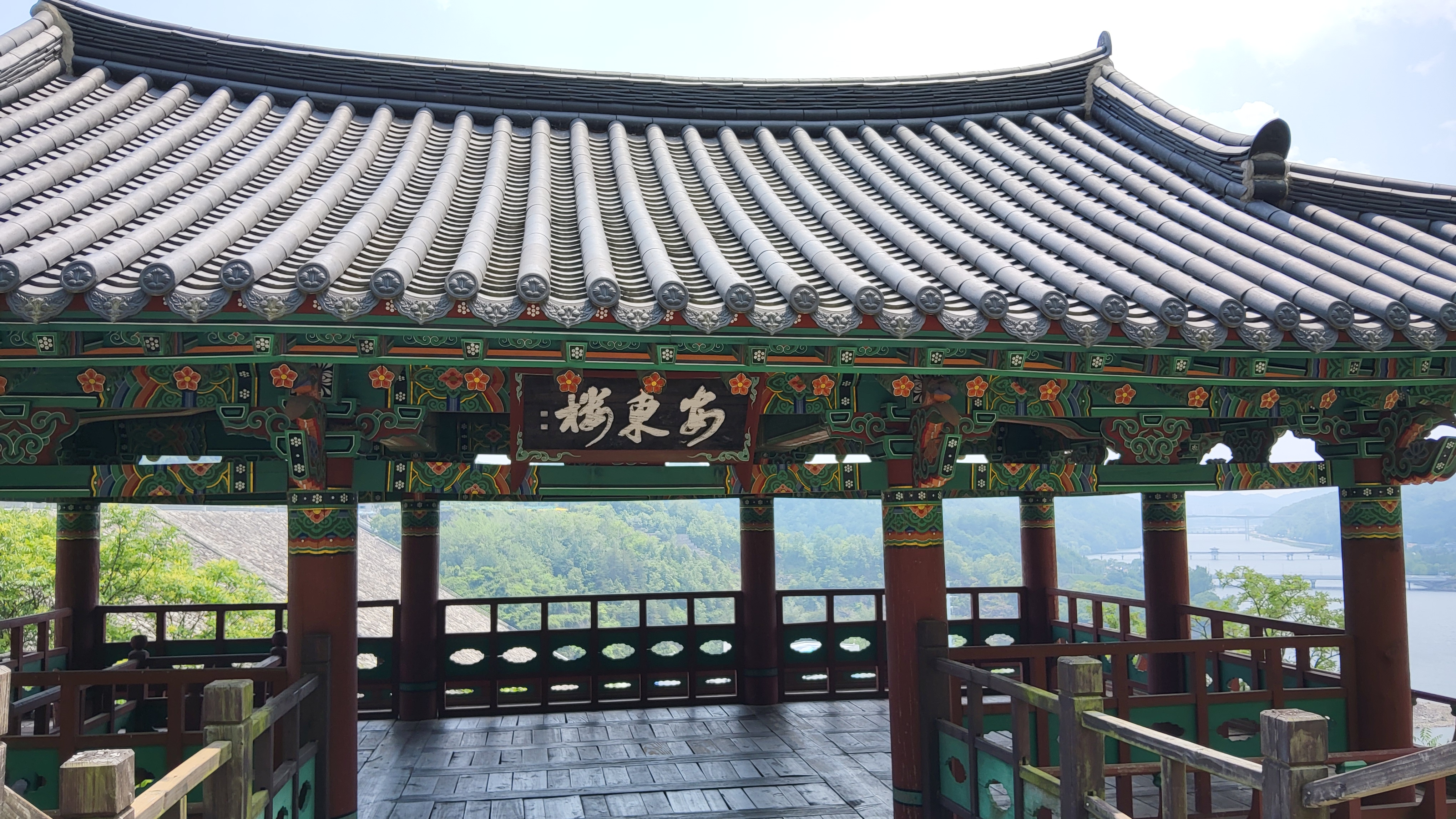 안내판을 지나서 본댐아래 설치된 안동루(安東樓)에 올라서