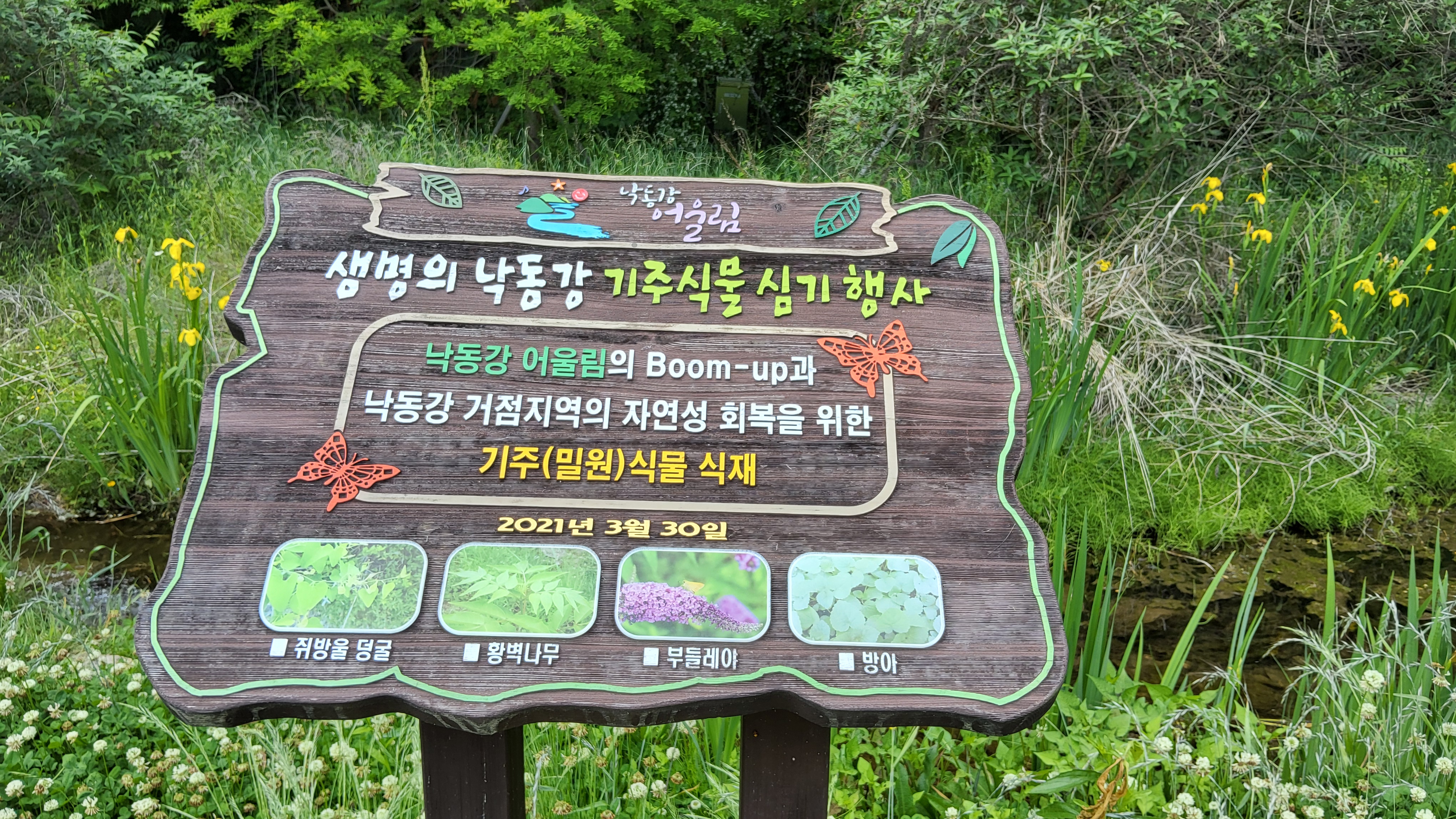 꽃창포가 노랗게 피어있는 낙강(落江)물길공원을 다녀왔다.
