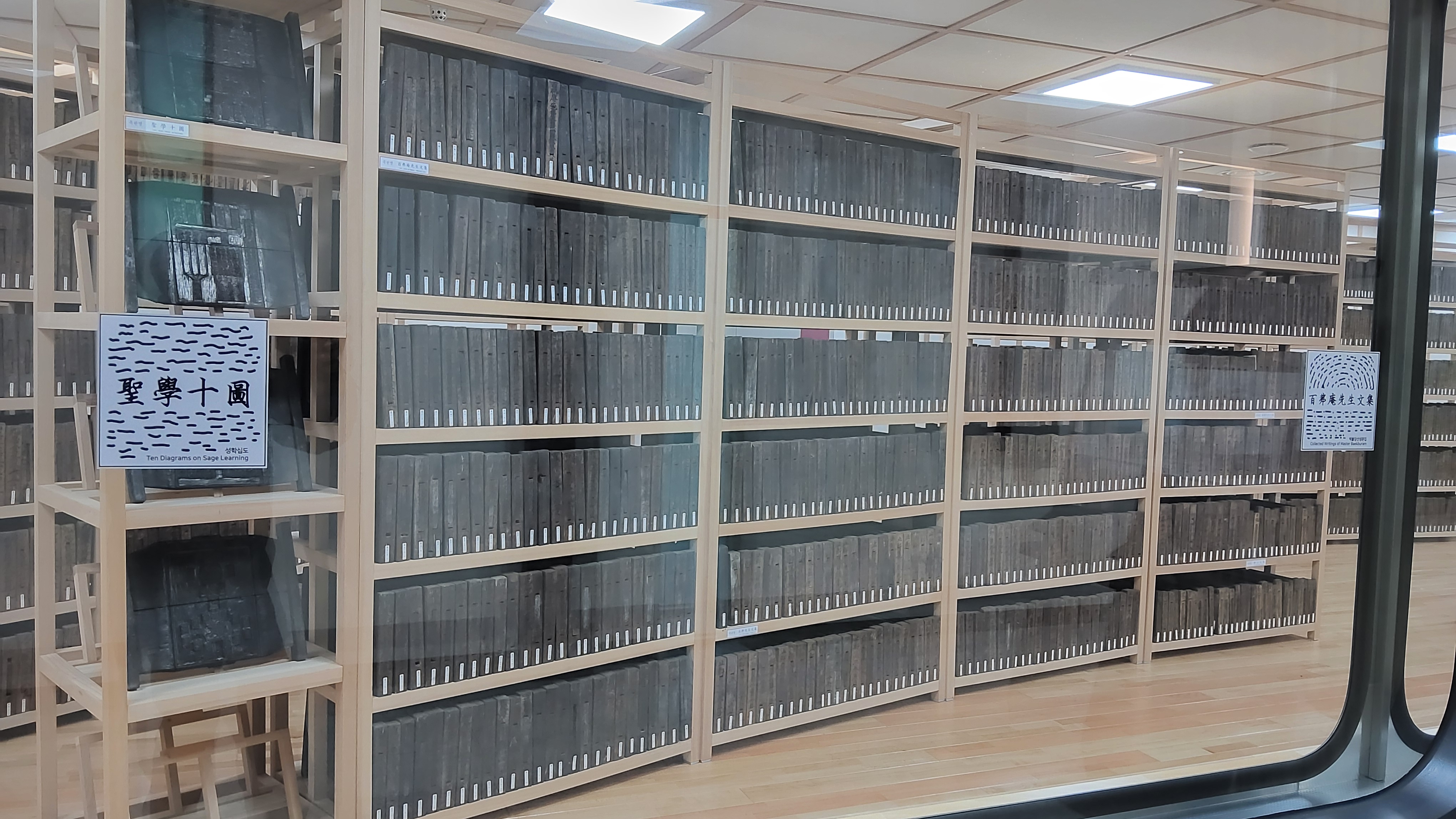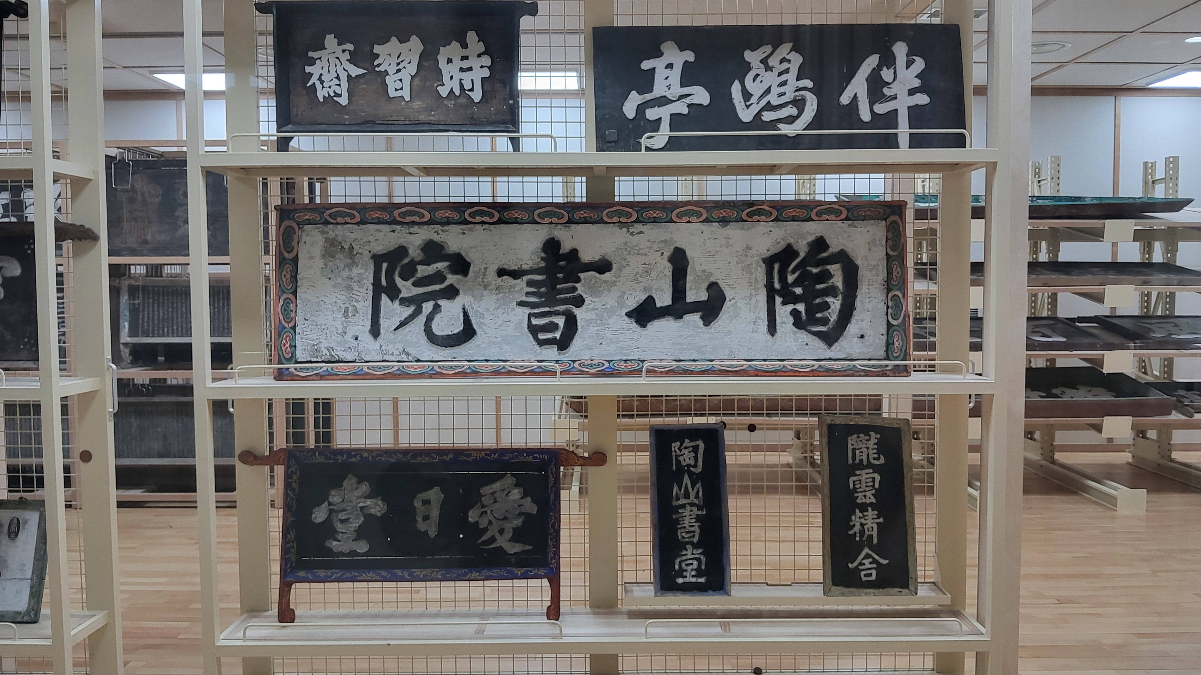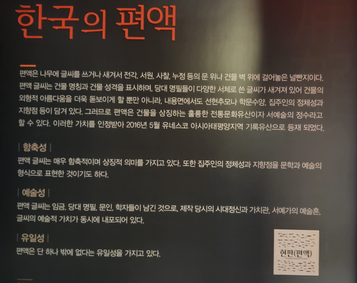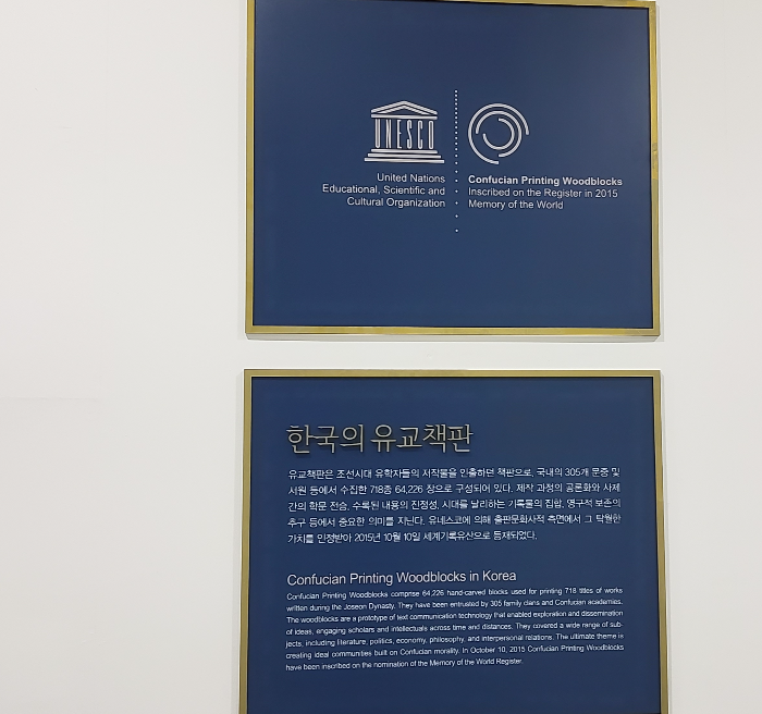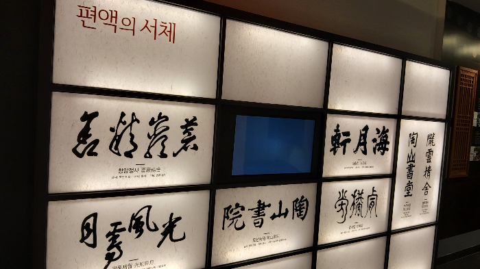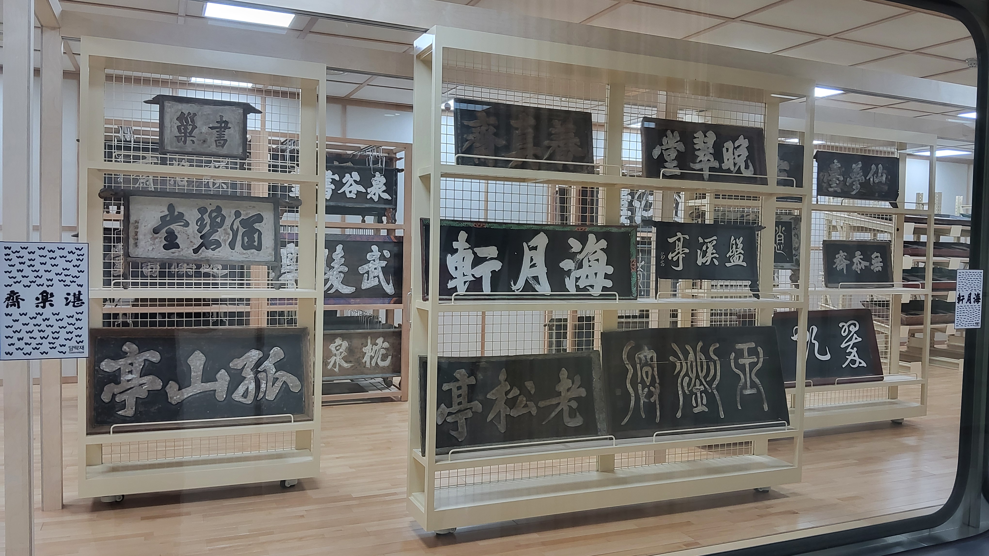 유리벽 안에 전시되어 있는 책판들과 편액들을 관람하면서