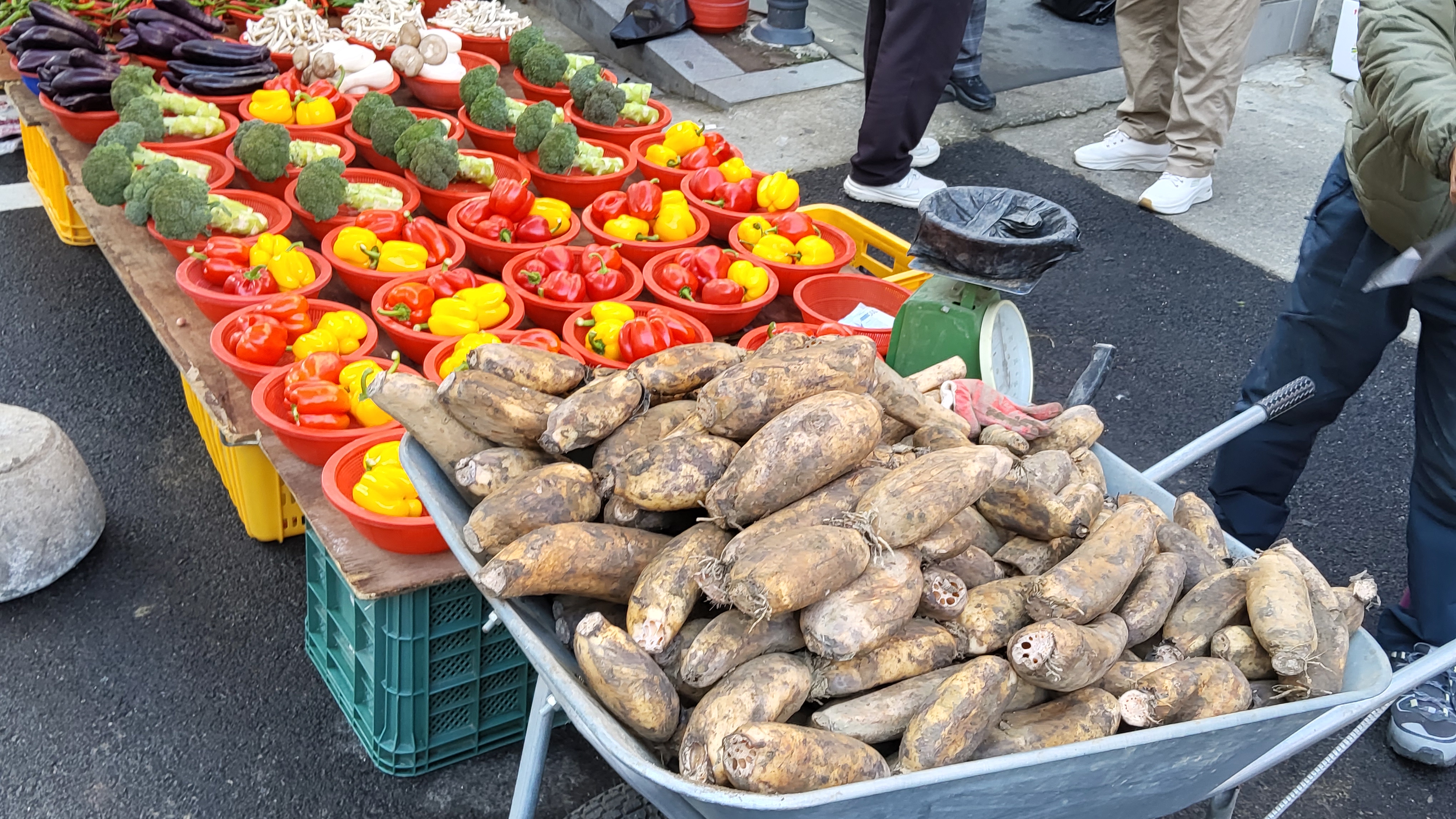 시장을 구경하다가 고구마 다섯박스를 샀더니