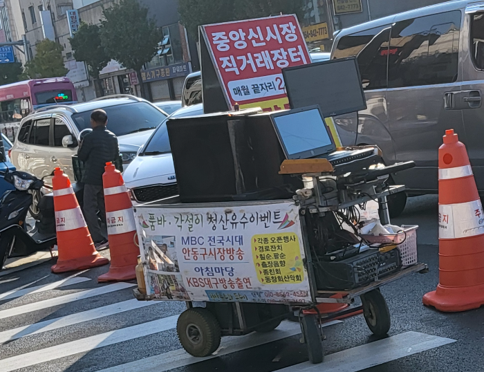 아침을 먹고 안동중앙시장의 노점상들이 노점을 펼치고 있는